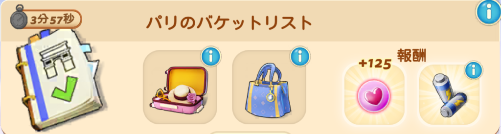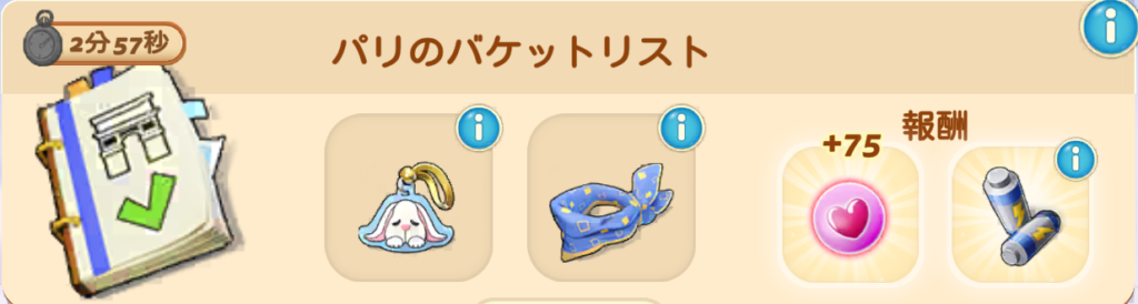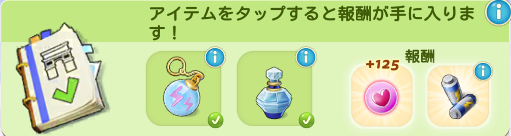 ※タスクのアイテムや報酬はユーザーによって変化する可能性もありますので、ご注意ください。