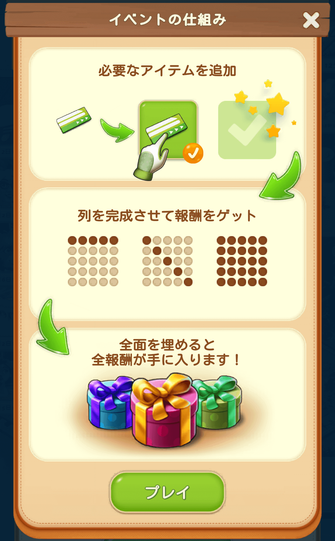 各列のアイテムを揃えると、都度報酬が手に入ります。