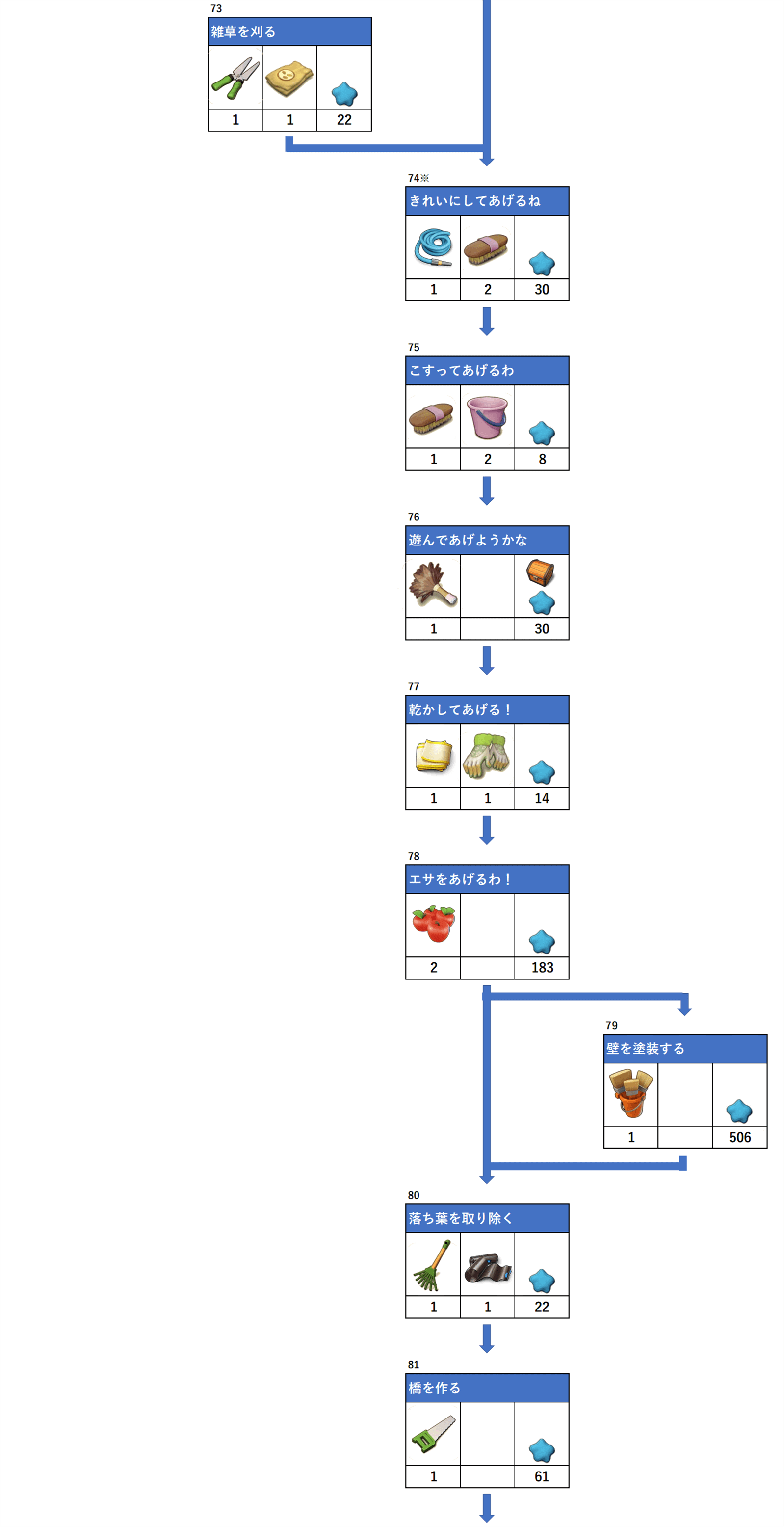 45はlv13くわ→lv11スコップになっています。報酬は☆124です。